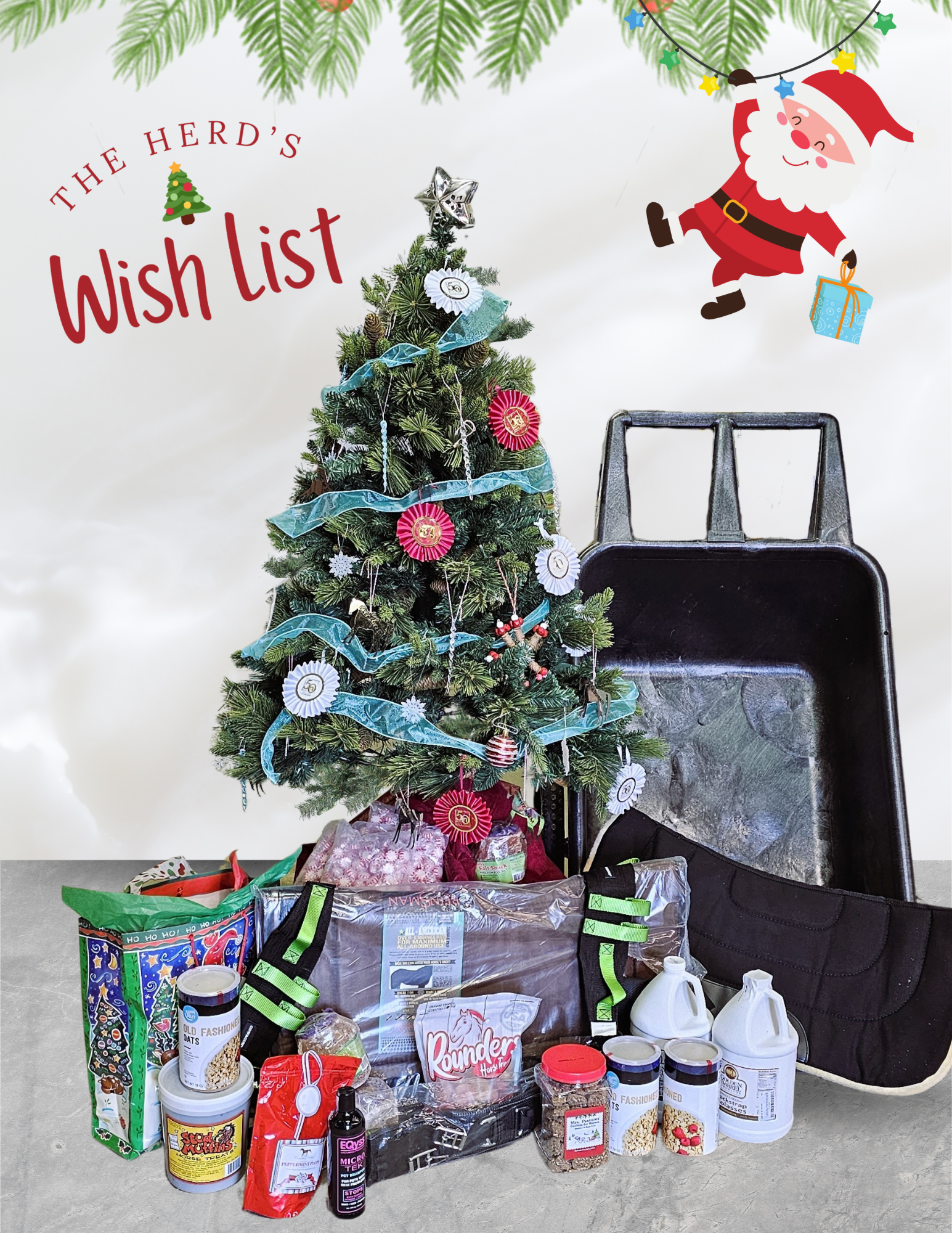 From Pine-Sol and laundry detergent (for those clean stalls & saddle pads!) to cozy winter blankets, Farrier's Formula supplements, salt licks, and new therapy toys, the horses need your help to make their season bright!